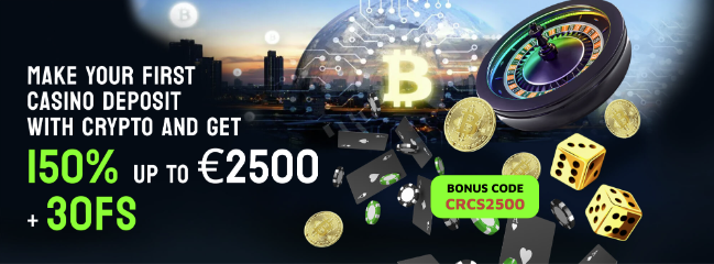 أدخل الرمز الترويجي CRCS2500 عند إجراء أول إيداع للعملات المشفرة الخاصة بك لتحصل على 150% حتى 2500 يورو و30 دورة مجانية.